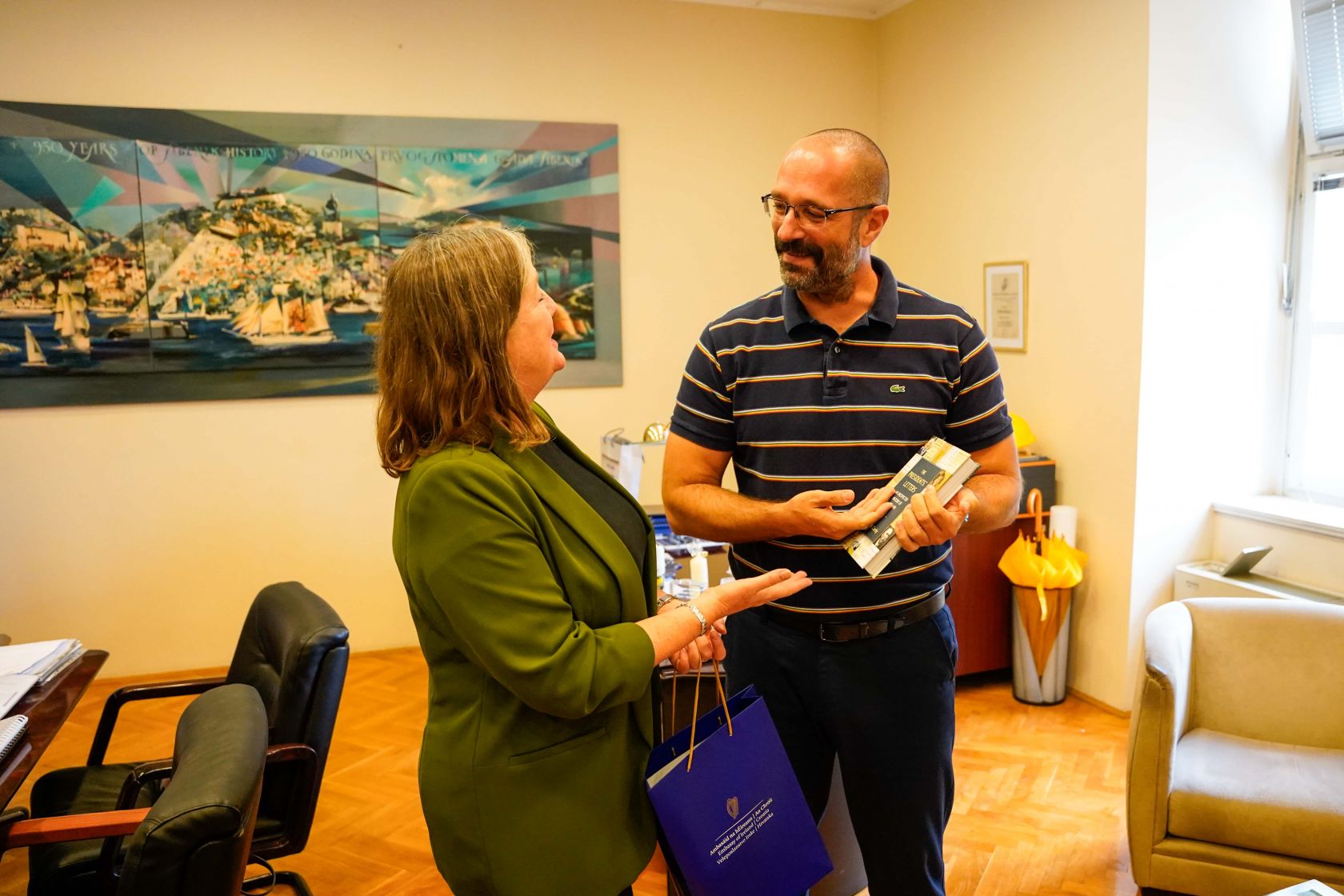 U sklopu prvog službenog posjeta Šibeniku, veleposlanica Republike Irske u Hrvatskoj, Njezina Ekscelencija Wendy Dorman-Smith, sastala se danas sa Danijelom Miletom, zamjenikom gradonačelnika Šibenika i njegovim suradnicima.