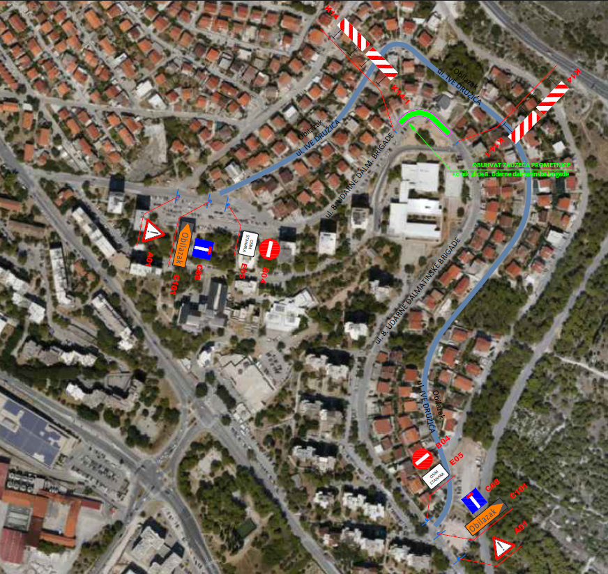 Zbog održavanja korizmenog programa u organizaciji Župe sv. Petra – Vidici u nedjelju 29. ožujka 2026.g. na snazi će biti privremena regulacija prometa u Ulici 8. udarne dalmatinske brigade. U vremenu od 18 do 21:30 sati doći će do kratkotrajnog zatvaranja dijela ulice za promet vozila kod kbr. 21. Obilazni pravci za sva vozila su ulicama I. Družića i F. Supila. Vozači se mole za razumijevanje
