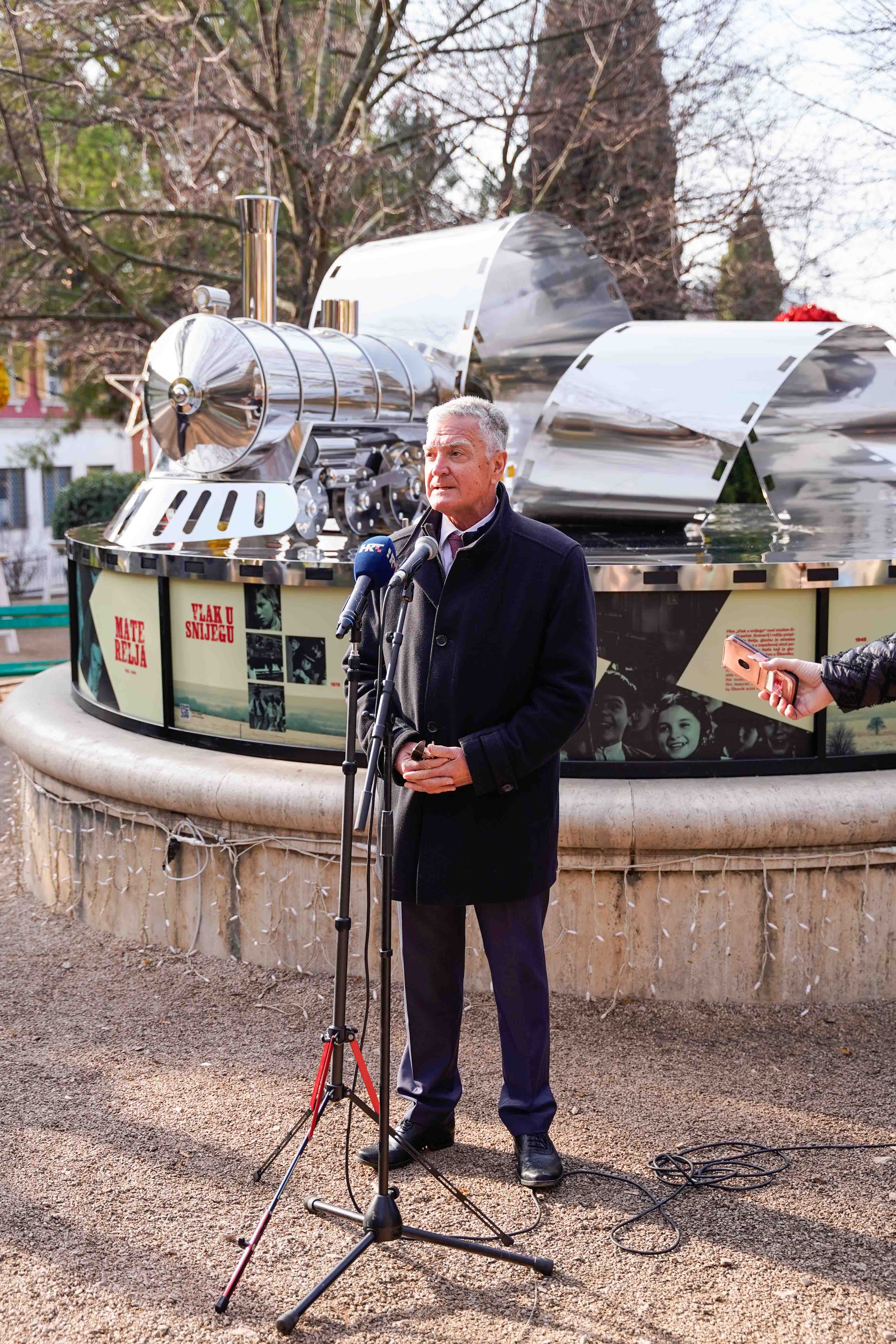 “Ovo je peta godina za redom da postavljamo skultpuru u parku. Nakon Roberta Visianija, Ester Mazzoleni, Dražena Petrovića i Vesne Parun došao je red na Matu Relju i njegov “Vlak u snijegu”, kazao je Hrvoje Jelković iz udruge Kolektiv 4B, dodajući kako se iduće godine obilježava 50-ta obljetnica premijere „Vlaka u snijegu“, jednog od najljepših i najpoznatijih hrvatskih dječjih filmova, kao i 20-ta obljetnica smrti Mate Relje.