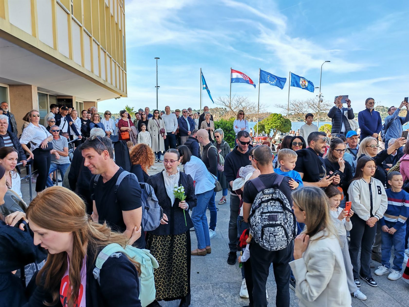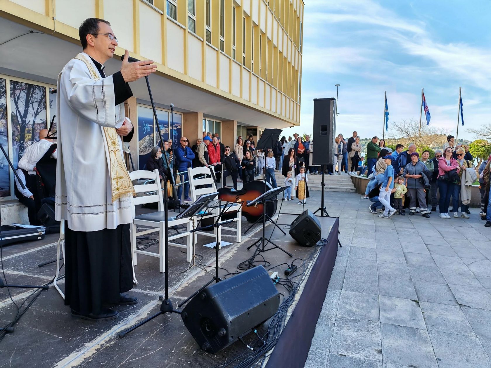 Brojne građane i goste na trgu je pozdravio i poželio im sretan i blagoslovljen Uskrs šibenski gradonačelnik Željko Burić, a čestitkama se pridružio i Joso Smolić, predsjednik Udruženja obrtnika Šibenik. Blagdansko jelo blagoslovio je katedralni župnik don Krešimir Mateša.