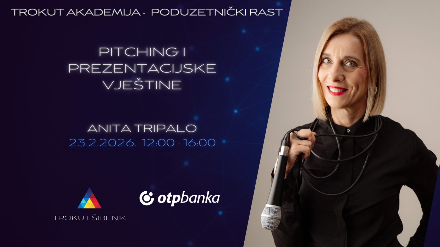 Kroz ovu zanimljivu i svim sudionicima u poslovnom svijetu potrebnu edukaciju vodit će Vas Anita Tripalo, stručnjakinja s diplomom iz komparativne književnosti i fonetike. Svoje bogato iskustvo brusila je godinama radeći na HRT-u s novinarima, voditeljima i sportskim komentatorima. Kao mentorica u Govorničkoj školi, pomogla je mnogim političarima i javnim osobama da se njihov glas dalje čuje. Zadnjih par godina vodi samostalni obrt „Jaka Jeka“, ali njen posao je ostao isti – učiteljica je ili mentorica, kako vam je draže, glasa, savjetnica za držanje govora, medijskih nastupa i umjetničkih izvedbi.